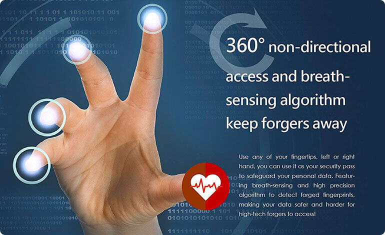 - 360-Degree Recognition System: No more awkward finger positioning—scan your fingerprint at any angle for quick access.