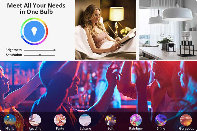 - Customizable Settings: Choose from a variety of colors, adjust temperature and brightness, and select from pre-set scenes like Party, Meeting Mode, Sleep, and Reading.