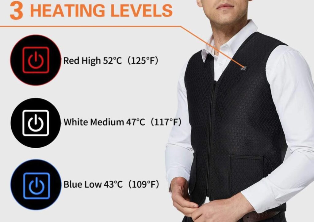 - Versatile Heating Levels: With three heating intensity settings, you can adjust the warmth to match your activity level and the weather.